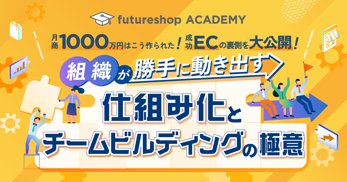 それが「futureshop ACADEMY(フューチャーショップアカデミー)」。数々の成功事例を交えて、売上アップのポイントやfutureshopの活用方法をお伝えしていく少人数制の実践型カリキュラムです。