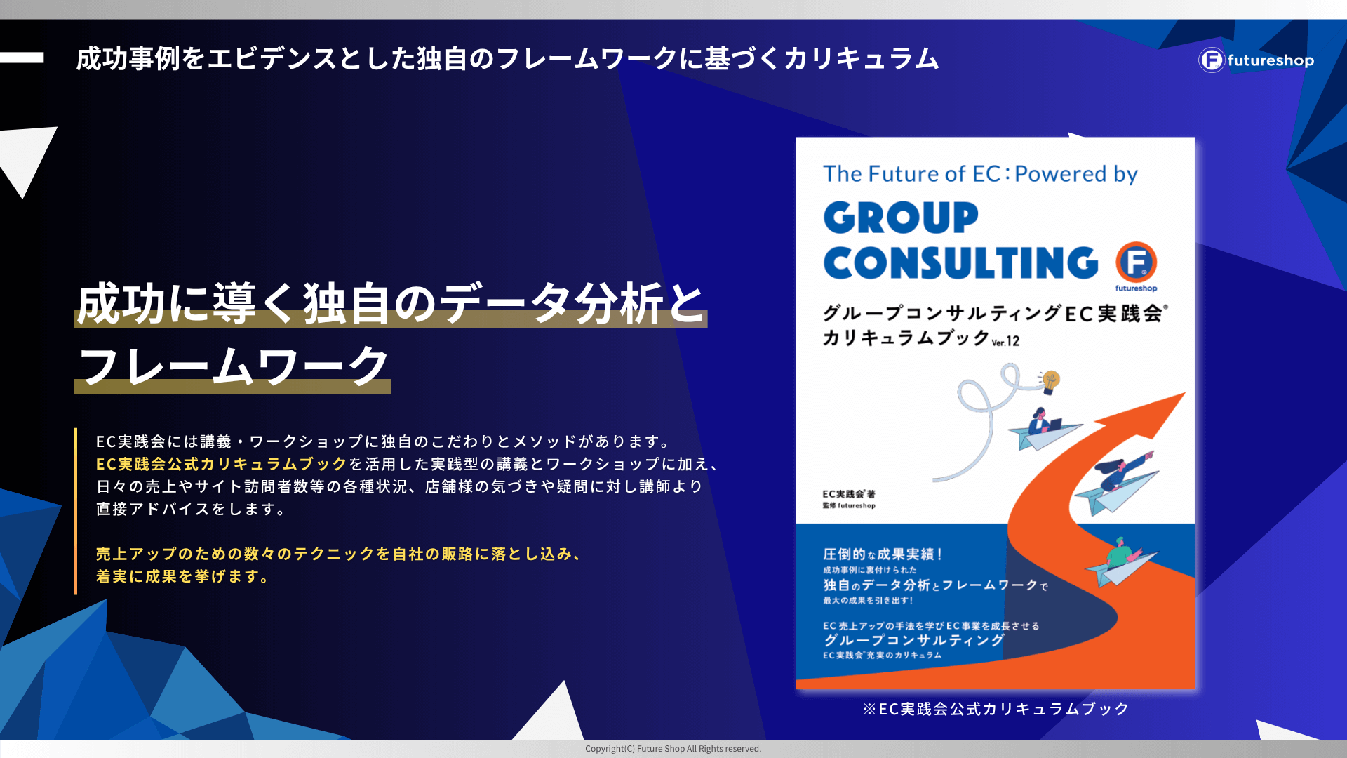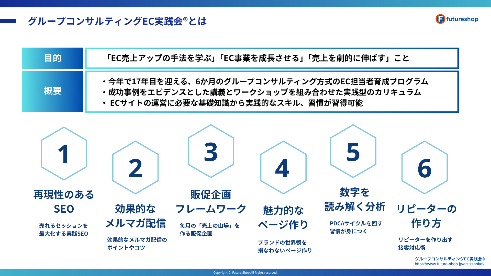 futureshop公式EC担当者育成プログラム「EC実践会®」を紹介しています。