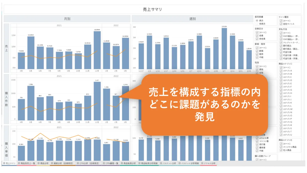 LTV・CPM・バスケット分析など多角的な視点で売上向上の打ち手を明確化