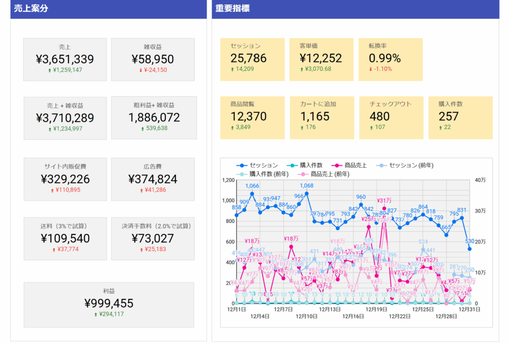 自動集計によって一画面で実売データとアクセスデータが閲覧可能