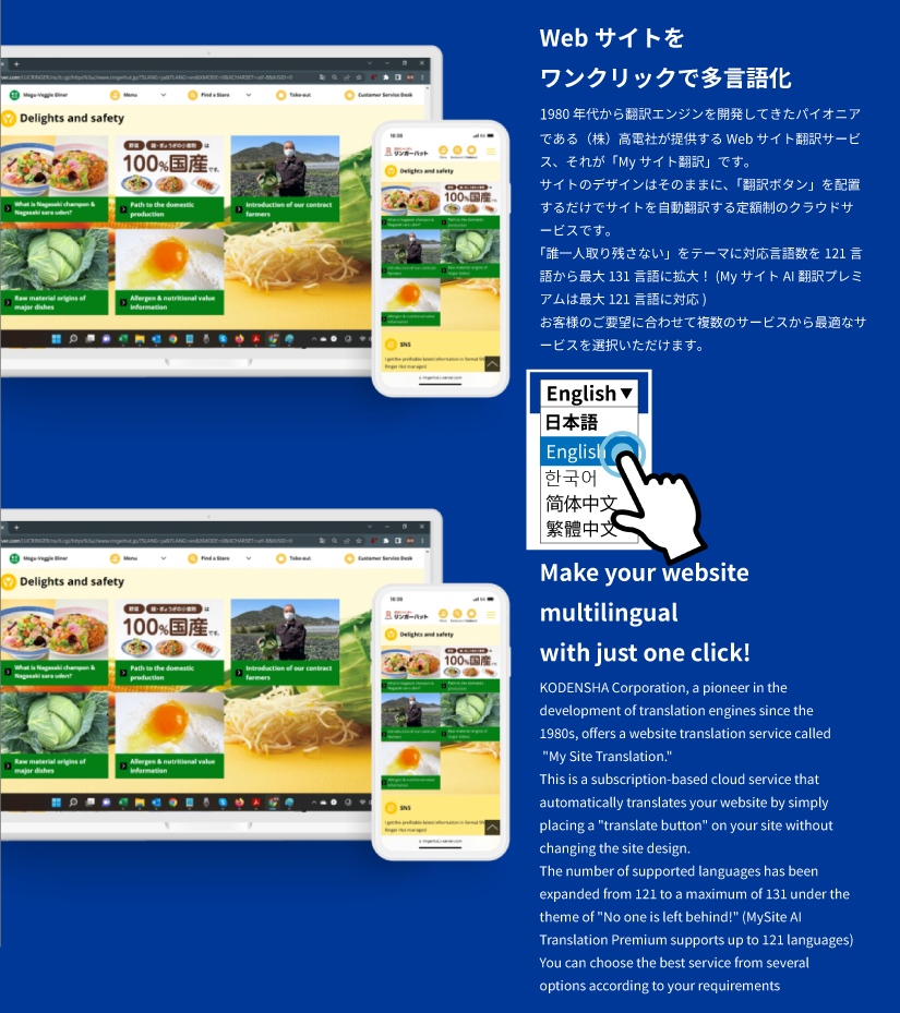 ボタンひとつで日本語サイトが多言語対応!売上アップと市場拡大をご支援します。