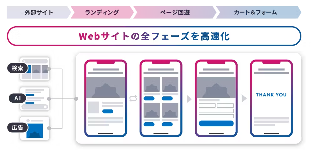 ランディングから購入・申し込みまでの全フェーズを、タグひとつで高速化。
