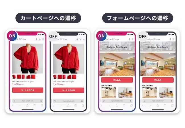 - 2024年9月22日~2024年10月5日に実施したスプリットテストの結果(モバイルユーザー・適用比率1:1)。