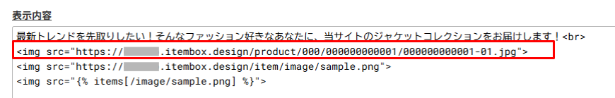 アイテム置換文字・アイテムURL(https://{店舗key}.itembox.design/item/~)はシステム側で変換いたします。