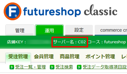 で表示される「サーバー名」が 「c01」「c02」「c03」「c04」になっている店舗様は、トライアルアカウントをご利用いただいております。